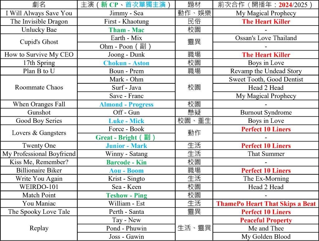 GMMTV 2026 招商會於昨(11/25)晚舉行,暫且不論主要小道消息的傳聞命中率極高,本次招商會共推出逾 30 部戲劇的前導預告,為歷屆單次最大量,且應該是每對 CP 都有分到新劇集,同樣是前所未聞,足見 GMM 之野心。然而如何兼顧漸增之戲劇需求、產能及品質,抑或是否該檢討新舊 BL(及 GL)演員人數躍升之下的培養與經營方式,皆是 GMM 必須審慎面對的課題。